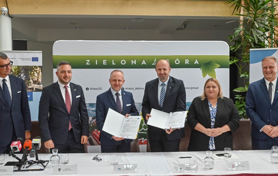 W Zielonogórskiej Palmiarni odbyła się uroczystość podpisania umowy na realizację projektu pn. „Gospodarka wodna dla Miasta Zielona Góra – Etap I” w ramach programu Fundusze Europejskie na Infrastrukturę, Klimat, Środowisko 2021-2027 (FEnIKS) – działanie 2.5 „Woda do spożycia”.